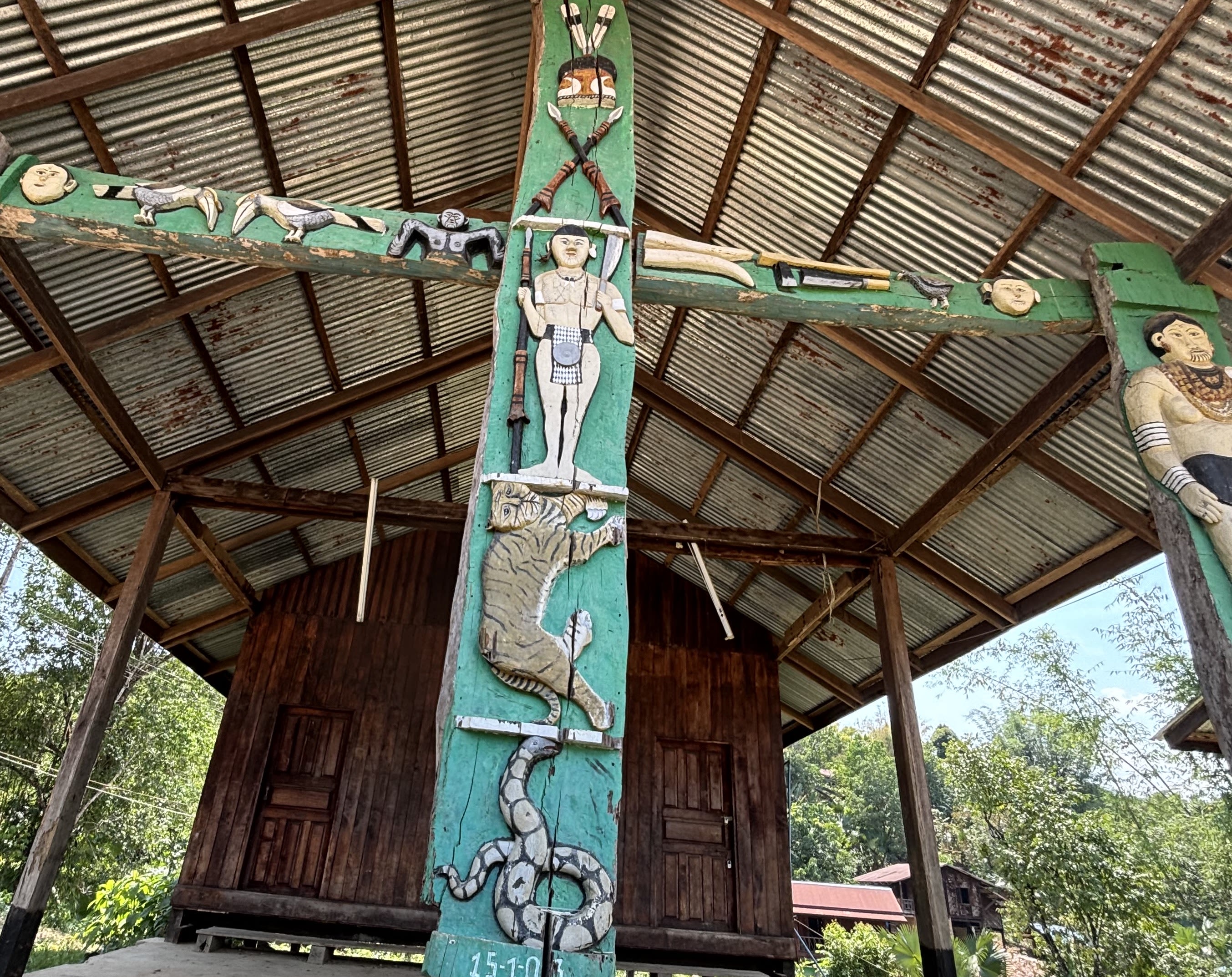 A totem in a Naga village depicting a tiger, highlighting its significance in their culture. © WWF Myanmar