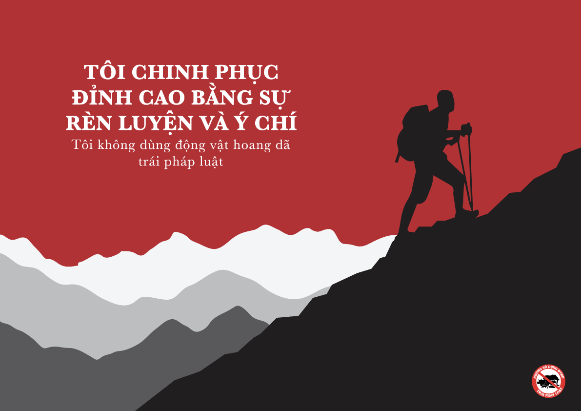 Translation: I conquer the top by hard work and strong will. I don’t use illegal wildlife products. ©TBC